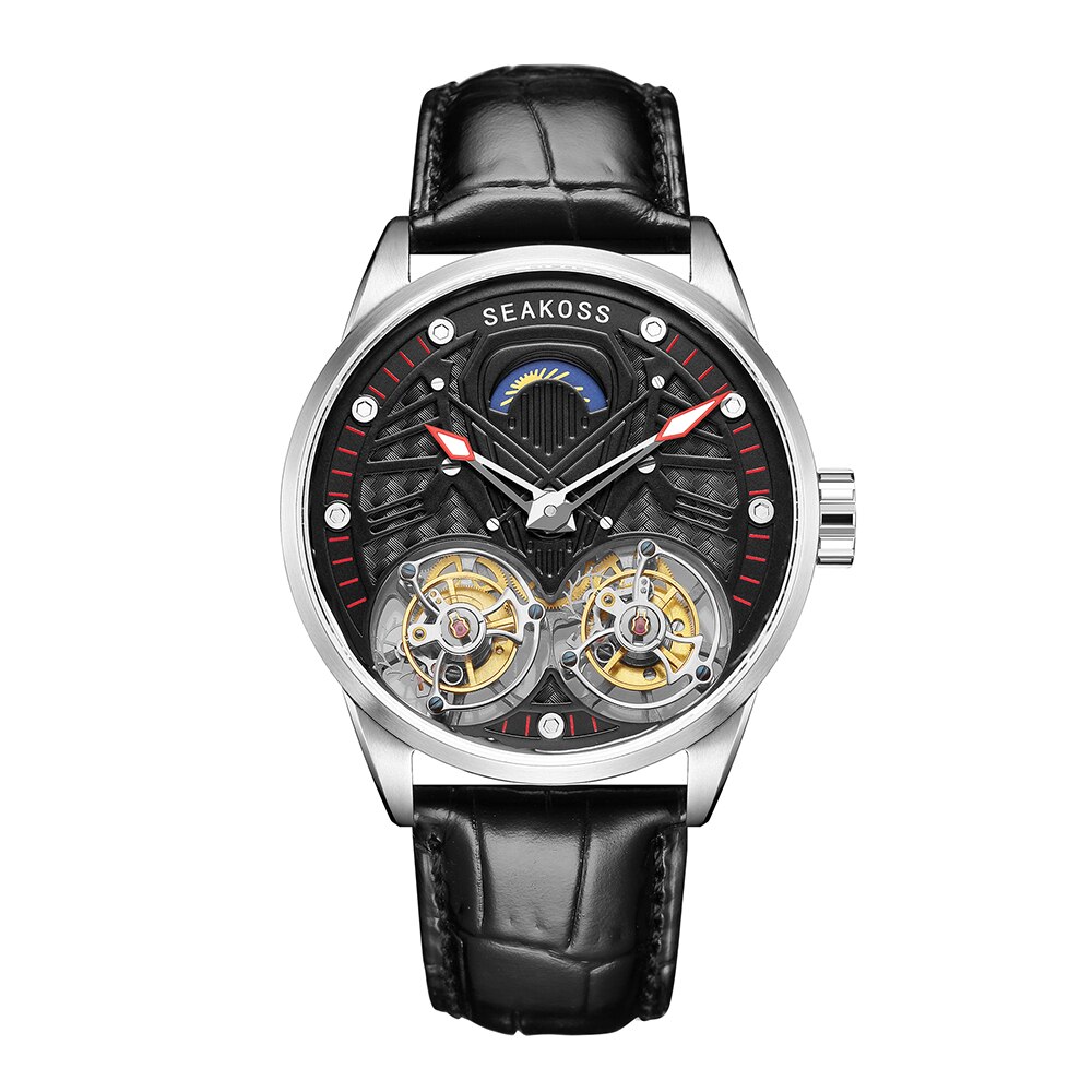 Brand: SEAKOSSProduct name: Men dual tourbillon mechanical watchMovement: Original dual tourbillon movementMovement type: Mechanical Hand Wind movementType:Skeleton hollow turbillonFunction: luminous hands, dual tourbillon, ultra-thin tourbillon watchDiameter: 42.5mmDial thickness: 10mmStrap width: 22mmStrap length: 23cmCase material: 316L stainless steelClasp type: butterfly claspTable mirror material: sapphire crystal glassEnergy storage: about 40 hoursFrequency: 28800Hz/HrWarranty: 3 yearsSupport: DropshippingStyle: fashion, luxury, business, sports,casual