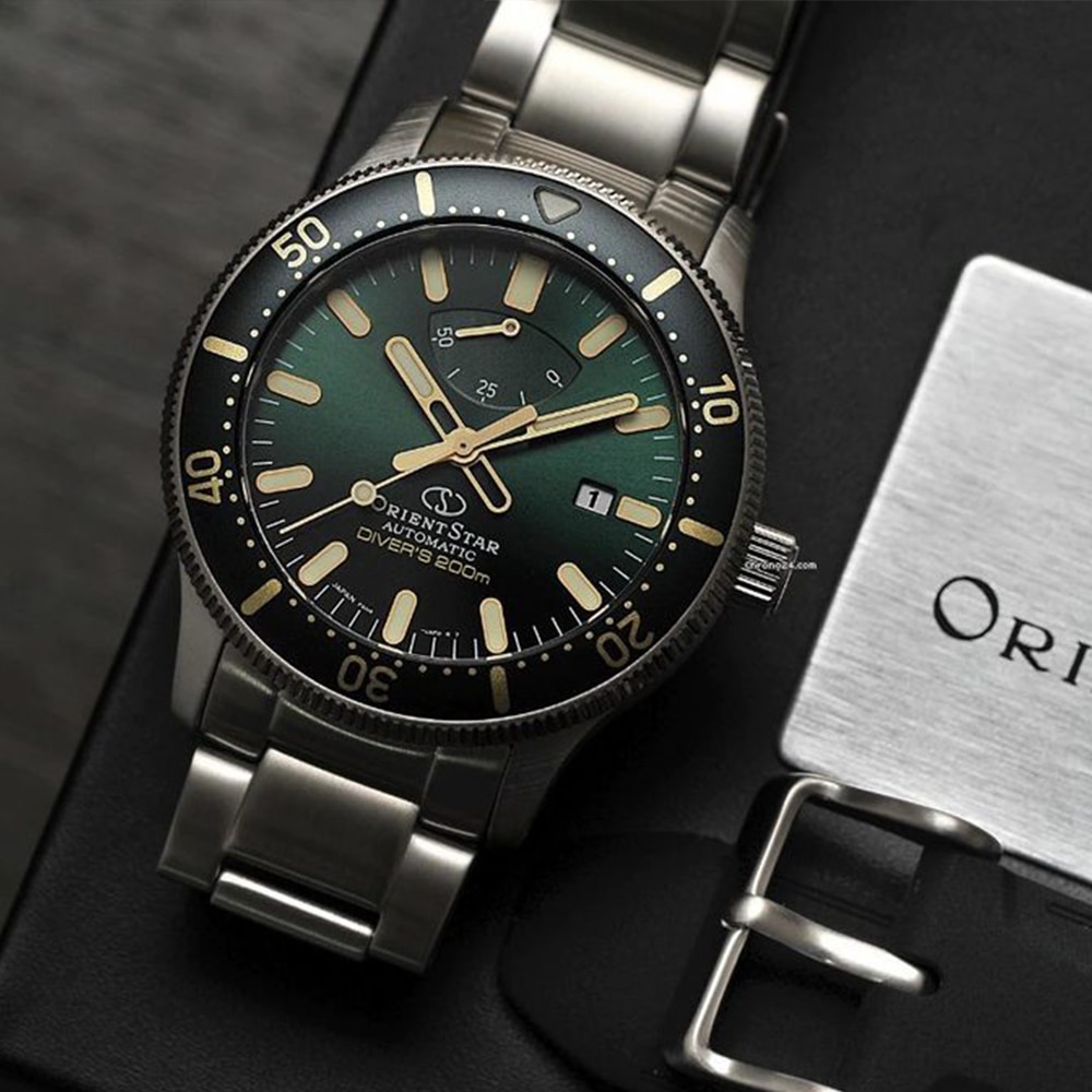 Original ORIENT STAR 200m ISO Professional Diving Watch Man,Japanese 44mm Sapphire Crystal Watch for Men Power Reserve Indicator