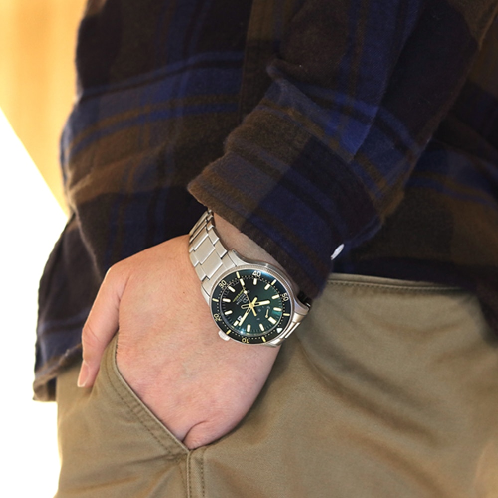 With an impressive fusion of timeless design and superior watchmaking, this new ORIENT STAR 43.6mm mechanical sports diver watch delivers several notable features. Complementing its stainless steel band is a sleek black dial with a 50-hour power reserve subdial, date indicator, and luminous lights on the watch’s hands and a box-shaped index, delivering high visibility in dark areas. Sapphire anti-reflective glass provides additional protection and visibility, while fine knurling bezel offers high maneuverability during diving. Designed with special ring frames securing a high level of shock-absorption, this dynamic watch meets the ISO (International Organization for Standardization) criteria. The sporty RE-AU030 series supports water resistance of 200 meters, ideal for diving and everyday use.