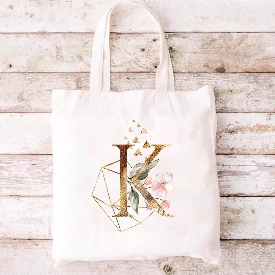 Women Black Shopping Bag Commuter Pink Flower Letters Initial Name Pattern Printing Series Canvas Shoulder Bag Tote Bag Reusable