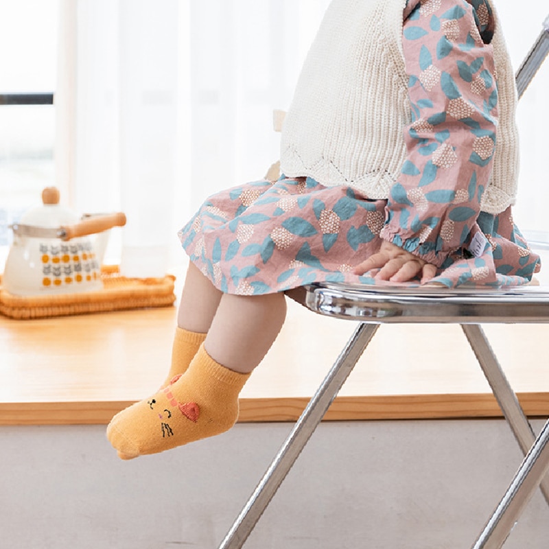 2 Pairs Winter Spring Anti Slip Baby Socks Cute Cartoon Animal Letter Print Toddler Kids Floor Sock Rubber Soles Boy Girl Socks