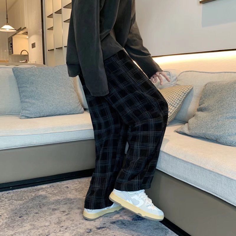Men Checkered Casual Pants Loose Straight Corduroy Pants Sweatpants Man Fashion Streetwear 2023 Spring New Hip Hop Trousers