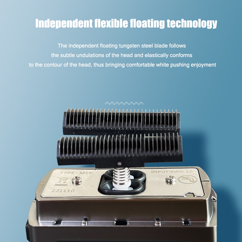 The independent floating tungsten steel blade follows the subtle undulations of the head and elastically conforms to the contour of the head, thus bringing comfortable white pushing enjoyment