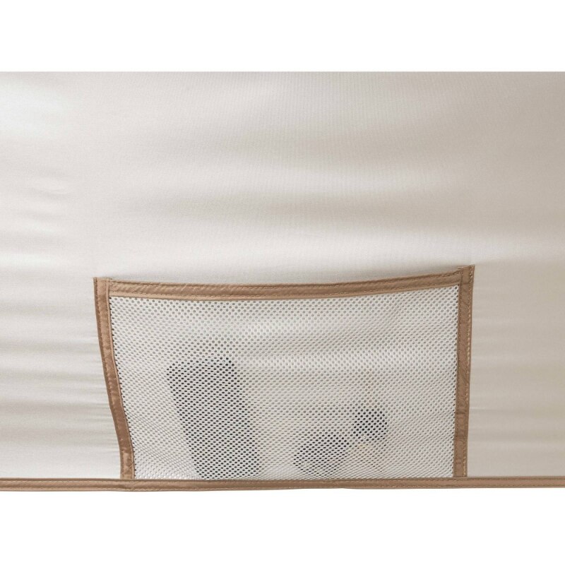 • Oversized, pagoda-style canopy with vented roof and a mesh pocket for small item storage