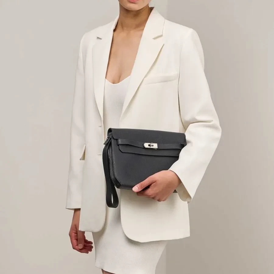 Túi Cầm Tay Nữ Hermès Kelly Depeches 25 Pouch Màu Đen